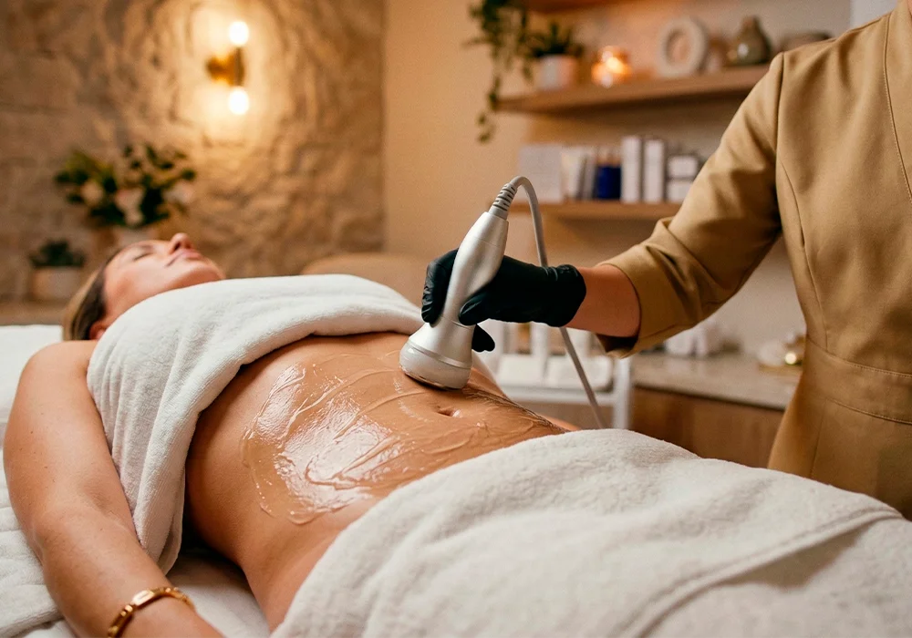 This non-invasive ultrasonic treatment uses sound wave technology to help break down fat cells in targeted abdominal areas. When followed by lymphatic drainage, it supports the body’s natural elimination process and enhances body contouring outcomes.